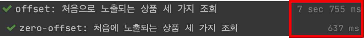 - offset을 통한 페이징 조회는 뒤 이은 상품들을 조회할수록 속도가 저하된다.