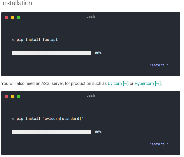 FastAPI를 설치하는 방법은 FastAPI공식 문서에 아래와 같이 나와있다.